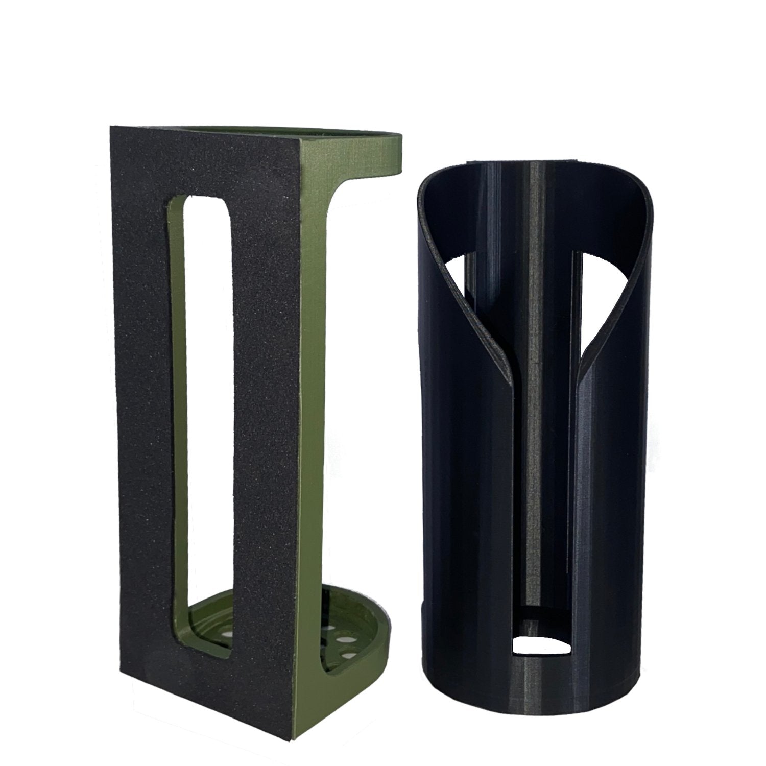 Verlängern Sie die Lebensdauer Ihres Schalldämpfers mit den 3D-gedruckten SilencerHold Schalldämpferhalterungen von lodenjockel. Vier haftstarke Neodym-Magnete in der Rückseite der Halterung bieten sicheren und platzsparenden Halt im Waffenschrank und gewährleisten eine aufrechte Lagerung ihres Schalldämpfers.